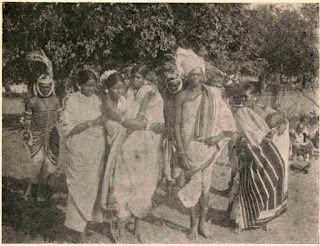फोटो : यह फोटो 19 बीसवीं सदी के शुरुआत की है (1900 - 1910 ईस्वी ) . फोटो में मुंडा वर - वधु शादी के बाद अपने घर / गाँव वापस आये है। साथ में पीछे पाइका नृत्य के वेशभूषा में मुंडा युवाओ को देखा जा सकता है। पाइका नर्तकों ने आज की तरह ही रंगीन कपड़ो को शरीर में लपेट कर अपना वस्त्र तैयार किया है। सिर की पगड़ी भी मोर कलगी से सजी है।